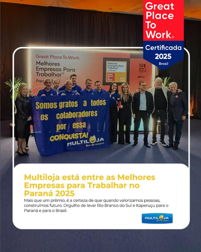Em um Estado que reúne cerca de 1,8 milhão de empresas ativas, a Multiloja acaba de alcançar um feito histórico: integrar o ranking das 100 Melhores Empresas para Trabalhar no Paraná, concedido pela consultoria global Great Place to Work (GPTW).